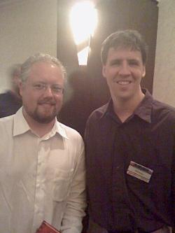 One of the other nominees in the webcomics category was Diary of a Wimpy Kid, a book that I’ve seen by the hundreds in shelves of many Barnes and Noble stores. After the awards show, Martha Thomases from ComicMix interviewed Jeff Kinney, the creator of the Diary series. I chatted with him and found out that he has kids who are a little too young for the books, 5 and 3 like mine. I also learned that his day job — which he has no plans to give up — is as a designer/developer on a massively multiplayer online game called Poptropica. After looking at the game’s home page, who wouldn’t have known it was related?